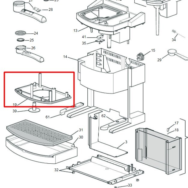 Кришка корпусна над тримачем фільтра до кавоварки Delonghi 5332168200